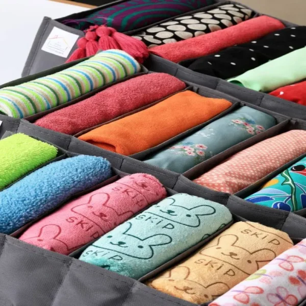 این ارگانایزر پارچهای با طراحی مستطیلی و رنگ نقرهای شیک، بهراحتی در انواع کشوهای کمد، دراور، میز آرایش یا حتی چمدان قرار میگیرد و به شما کمک میکند تا لباس زیر، جوراب، کراوات، شال، دستمال و سایر لوازم کوچک را بهصورت منظم و دستهبندیشده نگهداری کنید. جنس این نظمدهنده از پارچه اسپان باند ضخیم و باکیفیت است که در برابر پارگی و تغییر شکل مقاوم بوده و در عین حال سبک و قابل حمل باقی میماند.