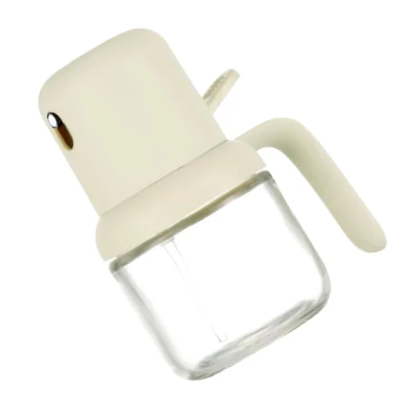 بطری روغن آشپزخانهای که در تصویر مشاهده میشود، یک ابزار ساده اما بسیار کاربردی برای استفاده روزمره در آشپزی است. طراحی آن شامل یک بطری شیشهای شفاف با درب و دستهی کرمرنگ است که امکان کنترل بهتر در هنگام ریختن روغن را فراهم میکند.