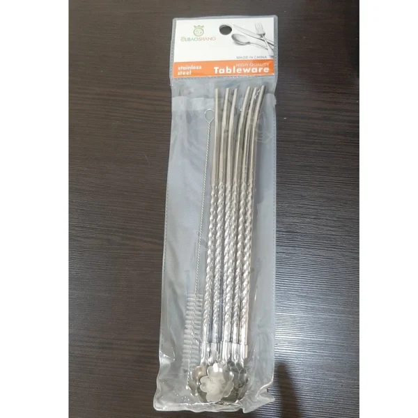 قاشق شربت خوری مدل پیچ نی دار طرح گل بسته 6 عددی به همراه برس شستشو
