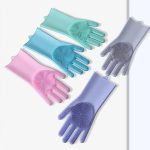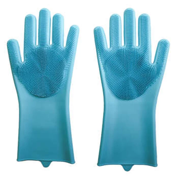 بخش کف دستکش با پرزهای متراکم سیلیکونی پوشیده شده که نقش اسکاچ یا برس را ایفا میکند و بهراحتی چربیها، آلودگیها و ذرات را از روی ظروف، سطوح آشپزخانه، سرویس بهداشتی و حتی بدن حیوانات خانگی پاک میکند.