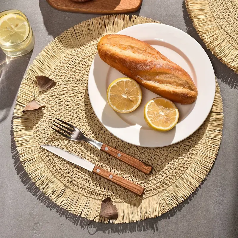 این محصول با طراحی الهامگرفته از سبک بوهمین (Boho) و استفاده از بافتهای طبیعی مانند کنف یا نخهای دستبافت، جلوهای گرم، صمیمی و هنری به میز شما میبخشد.