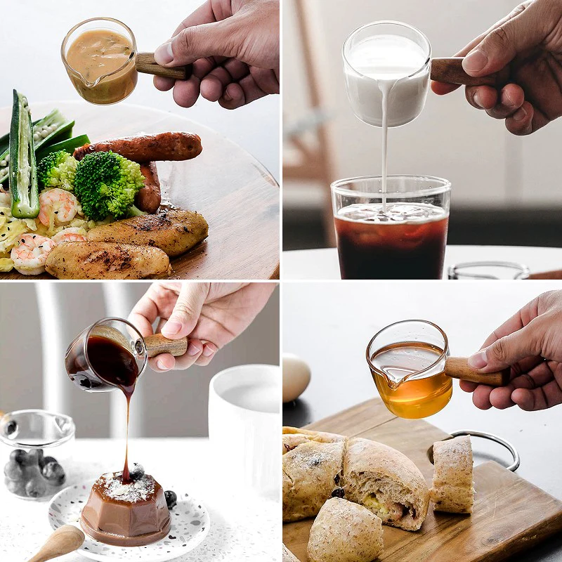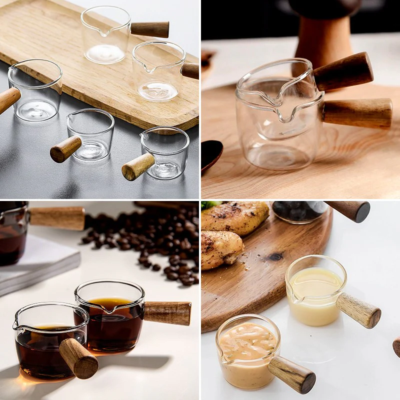 سس‌خوری پیرکس دسته چوبی یک محصول زیبا و کاربردی برای سرو انواع سس، روغن، سرکه و حتی نوشیدنی‌های سبک است.