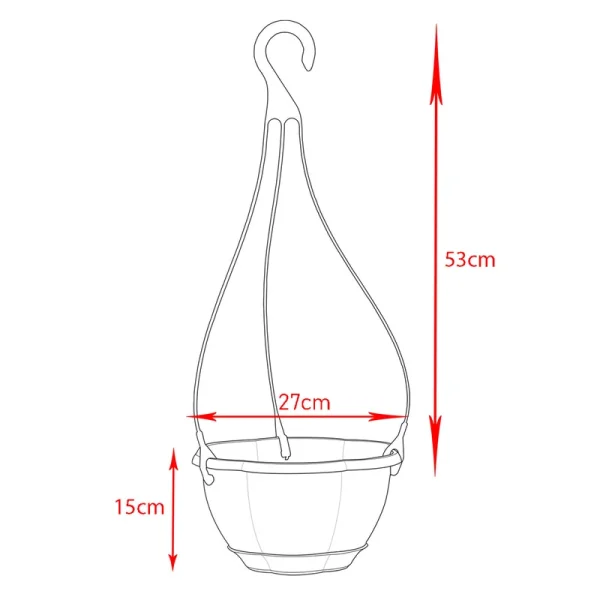 ابعاد آن حدود ۱۲×۱۲×۱۲ سانتیمتر است و به همراه زیرگلدانی عرضه میشود تا مانع ریزش آب به سطح زیرین گردد.