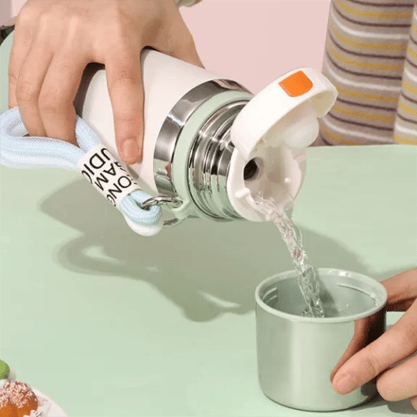 درب فلاسک به صورت پیچی طراحی شده و قابلیت استفاده به عنوان لیوان را دارد، در حالی که خروجی فشاری آن استفاده را آسانتر میکند.