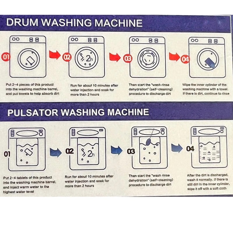 همچنین با پاک کردن رسوب روی المنت و دیگ ماشین، موجب دوام ماشین و بالا رفتن راندمان آن میشود. این قرص در بستهبندی 12 عددی عرضه میشود و برای هر بار مصرف یک بسته کافی می باشد .