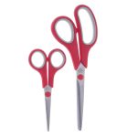 این مجموعه شامل دو سایز مختلف است؛ یکی کوچک‌تر برای کارهای ظریف و دقیق مانند برش کاغذ یا نخ و دیگری بزرگ‌تر برای برش‌های سنگین‌تر مانند پارچه یا مقوا. وزن سبک و طراحی ارگونومیک باعث می‌شود این قیچی‌ها گزینه‌ای مناسب برای استفاده روزمره باشند.