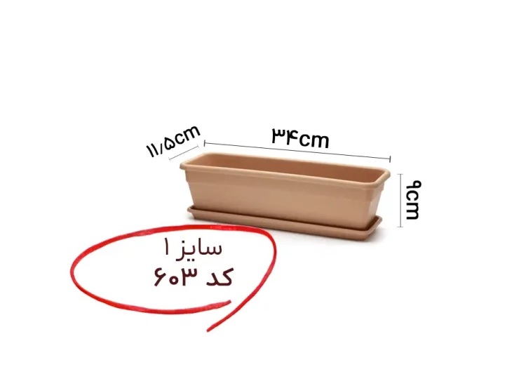 گلدان مستطیلی پلاستیکی گل آذین سایز 1 با کد 603 و طول 34 سانتیمتر، یک گزینه کاربردی و زیبا برای نگهداری گیاهان آپارتمانی و تزئینی است.