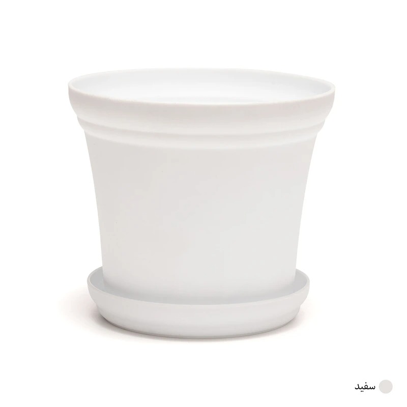 این گلدان به همراه یک زیرگلدانی مناسب ارائه میشود تا آب اضافی پس از آبیاری در آن جمع شود و از تماس مستقیم خاک با آب جلوگیری کند.