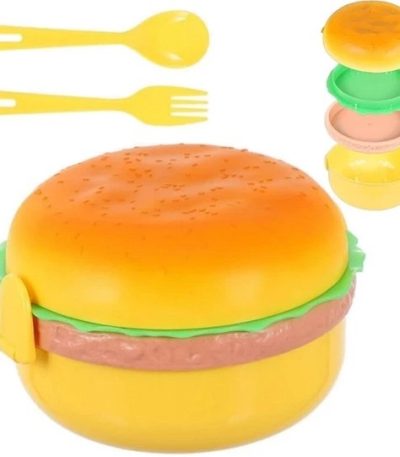 ظاهر این ظرف به شکل همبرگر طراحی شده و همین ویژگی باعث جلب توجه کودک و افزایش میل او به غذا خوردن میشود.