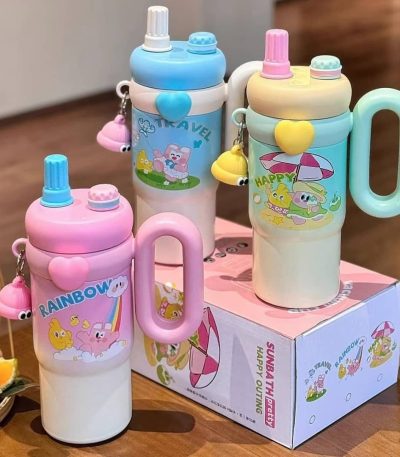 رنگهای پاستلی ملایم و رنگین کمانی جلوهای لطیف و چشمنواز به ظاهر آن میبخشند و آویزهای عروسکی یا سیلیکونی متصل به درب، حس فانتزی و شادی را در استفاده روزانه تقویت میکنند.