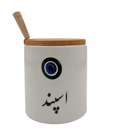 بانکه سرامیکی اسپند، ترکیبی از طراحی سنتی و کیفیت مدرن است که برای نگهداری اسپند طراحی شده است. این بانکه از سرامیک مرغوب ساخته شده و با درب چوبی طبیعی، جلوهای گرم و اصیل به فضای آشپزخانه یا دکور منزل میبخشد.