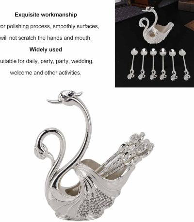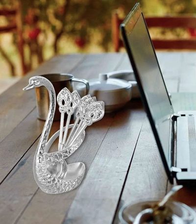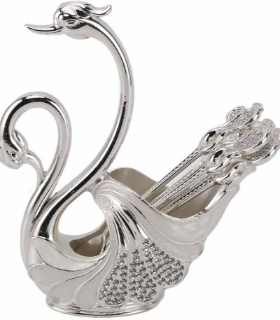 جا قاشقی سایز بزرگ طرح قو با 6 قاشق استیل