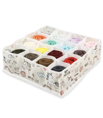 این محصول با طراحی پارچهای مقاوم و تقسیمبندی 16 خانه مجزا، بهترین انتخاب برای مرتبسازی جوراب، لباس زیر، لباسهای کوچک کودک و وسایل شخصی است.