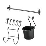 دارای جای گلدان، جا دستمالی و قلاب برای نگهداری وسایل مختلف.