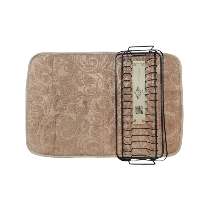 نمگیر آبگیر کنار سینک طرح گل برجسته میکروفایبر SRP همراه با استند فلزی، ترکیبی از زیبایی، کارایی و دوام را در فضای آشپزخانه به نمایش می‌گذارد.
