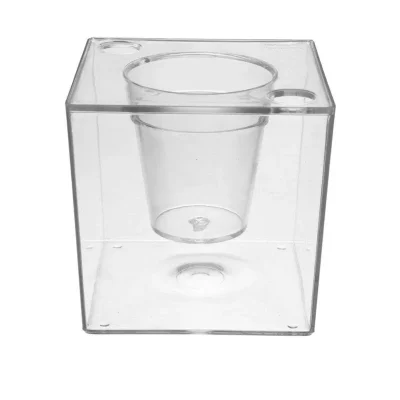 جنس این محصول اکرولیک بوده و این گلدان ها شفاف بوده و به طور همزمان میتوان بخش داخل خاک گلدان را دید و از خشک بودن خاک اطلاع پیدا کرد و همچنین می توان ماهی های داخل آکواریوم را مشاهده کرد.